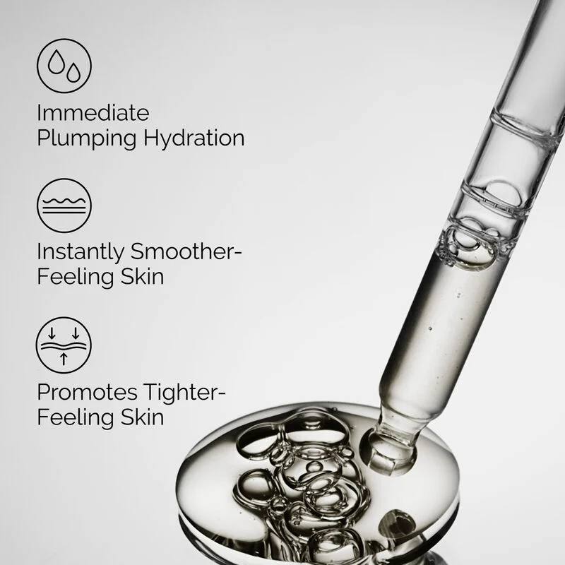A lightweight, oil-free serum combining three molecular weights of hyaluronic acid for multi-depth hydration, plus vitamin B5 to enhance surface hydration and support barrier repair.
